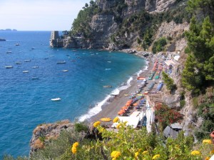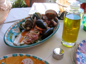 We had a wonderful lunch at this small trattoria along a cliff path leading to the Fornillo beach in Positano, along the Amalfi Coast. We had mixed seafood antipasti and spaghetti with tomatoes and mozzarella.
