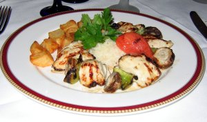 For the main courses, lamb was the star. We had it as pirzola (baby chops), donner kebab (vertically grilled over rice); Yogurtlu Karisik (combination of lamb and chicken. chargrilled, served with garlic yogurt and tomato sauces on pita bread) and another kebab dish served over eggplant. We also had a chicken kebab dish served with potatoes. All this was washed down with a few Efes beer, a Turkish Lager.