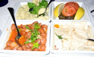 We sat upstairs in the spacious, dimly lit room that warmed up considerably after we arrived. We started with a cold, mixed appetizer plate. It included stuffed grape leaves, Cacik (chick pea & tahini paste, seasoned with garlic and olive oil), humus and Yalanci Dolma (red kidney beans.) We requested a change but our waiter informed us that the “no substitution” rule was in effect and would not be waived. Despite our doubts, the beans were enjoyed by all. We also shared a Kofte, a patty stuffed with ground lamb and spices.