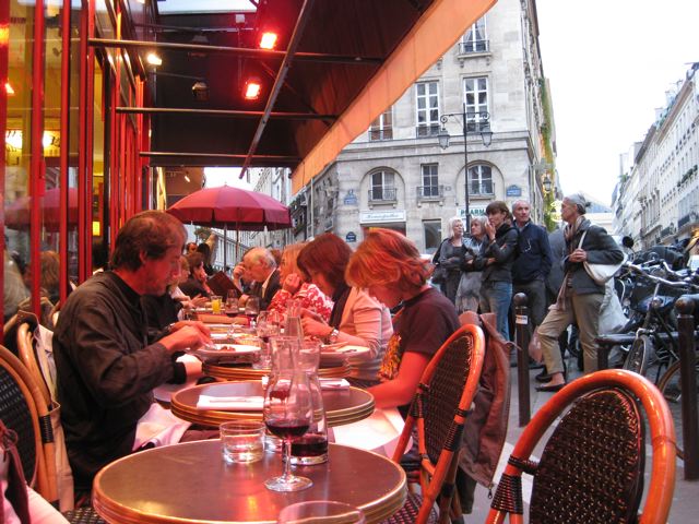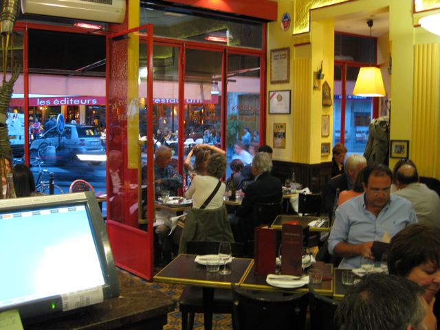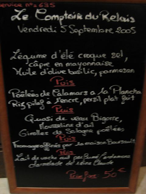 Yves Camdeborde’s Le Comptoir off the Boulevard Saint-Germain in the 6eme Arrondisement is packed every night. People actually wait in line (on line for New Yorkers) for a table which is something I have never seen before in Paris. I arrived early on a Sunday evening and was lucky enough to get a table outside just as the line was starting to form. I ordered a ‘planche cochonaille’ (which is a small cutting board with assorted chacuterrie) followed by a ‘salade de poulpe’ (octopus salad). I enjoyed these very much a with a ‘pot’ of Saumur rouge. Finally for dessert I ordered the caramel ice cream with sea salt. The rich, deep color fooled me into thinking I would taste the sweet cream first. Instead, it was the salt and then the caramel. That was unexpected but delicious just the same.