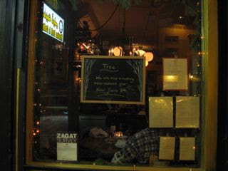 I went to Tree in the East Village with my brother before the holidays. Chef-owner Andrew Robinson, formerly of Gramercy Tavern, took over the old Brunetta’s restaurant on First Avenue. The small, narrow restaurant, with a backyard garden, serves French bistro food. We started with two salads followed by steak frites and mushroom risotto with truffle oil, one of the daily specials. We also had a reasonably priced bottle of Chinon. The food was decent with attentive service.