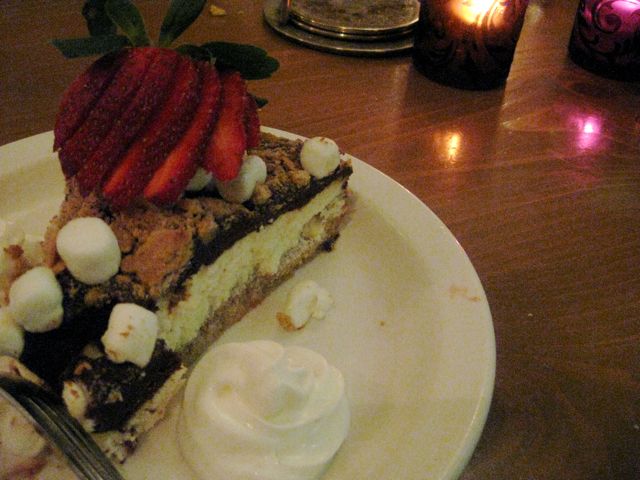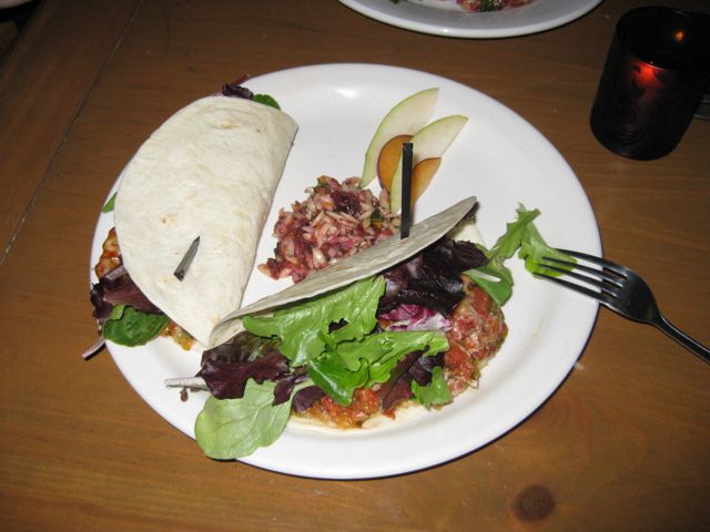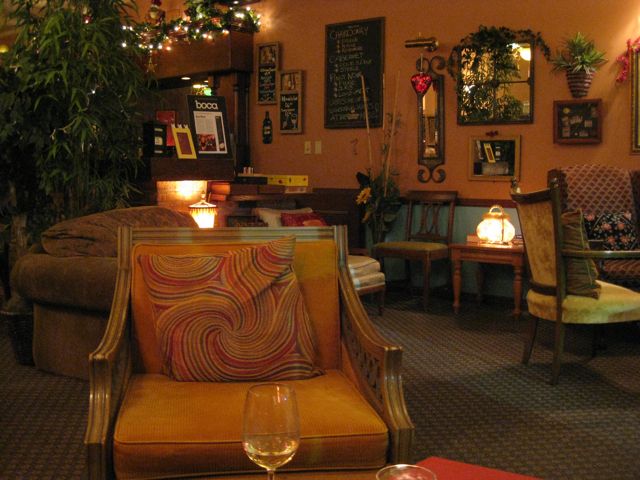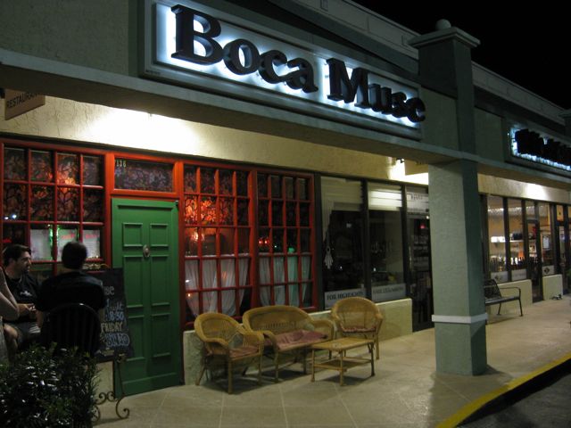 Boca Muse is one whacky place. Formerly an English-style pub, its now part pub, part restaurant, part cafe, part lounge. Apparently many of the employees of the nearby restaurants have made it their regular hang out. The wine list was actually a collection of reviews, some with ‘suggested retail prices’ but none of the actual retail prices. Instead of selecting a wine from the list, we were asked to just tell the waitress what were looking for and she would make some suggestions. We just looked in their wine refrigerator and finally found a reasonably priced 2006 Sancerre. After being told everything was on the menu, including the ‘too big for one’ empanadas, we found out they were in fact out of empanadas. Despite all the whackiness, we found the food to be pretty good. We had ‘mac-n-cheese’ (this was OK but nothing special); quesadillas, a small tomato basil pizza, grilled cheeses with pesto, a blt sandwich on multigrain bread, fish tacos, and a delicious crab cake. For dessert, we had a ‘smores cheese cake. A real good time was had by all.