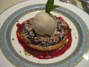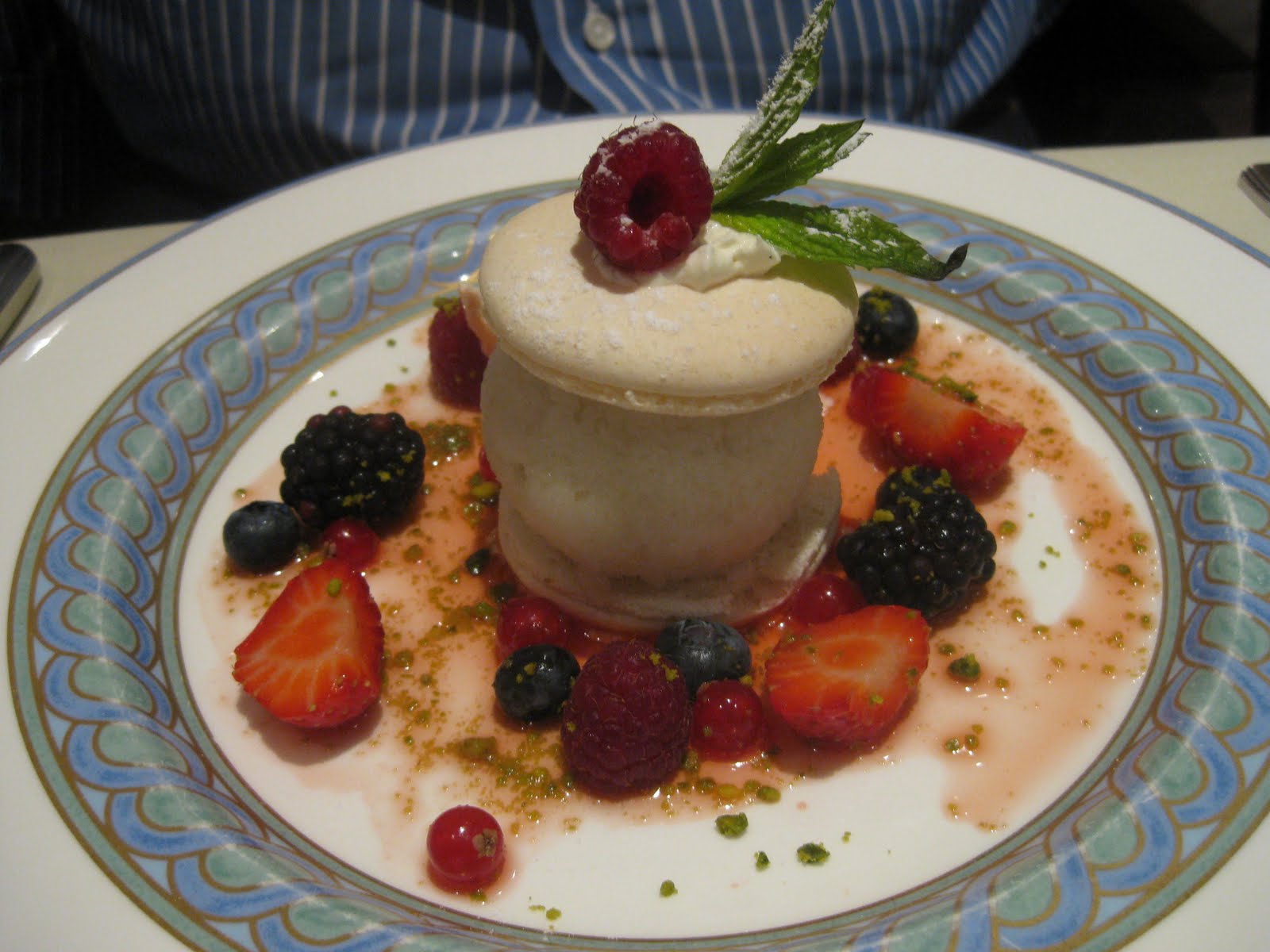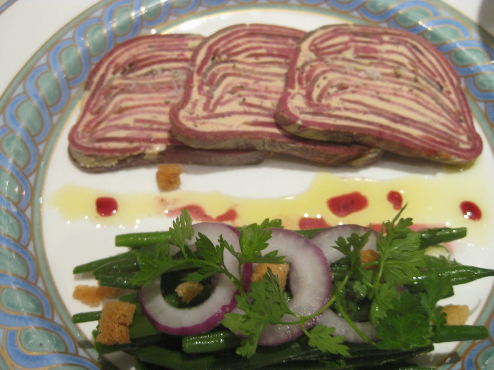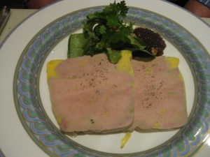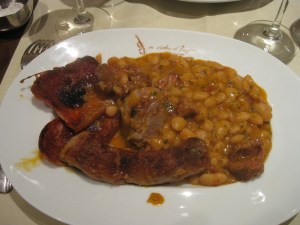 September 7, 2009 We had pressé de Langue and foie gras to start, followed by cassoulet and rise de veau ‘Viennoise’ and finally for desert, feuilleté aux figues and macaron moelleux. For the wine, we selected a bottle of Madiran.