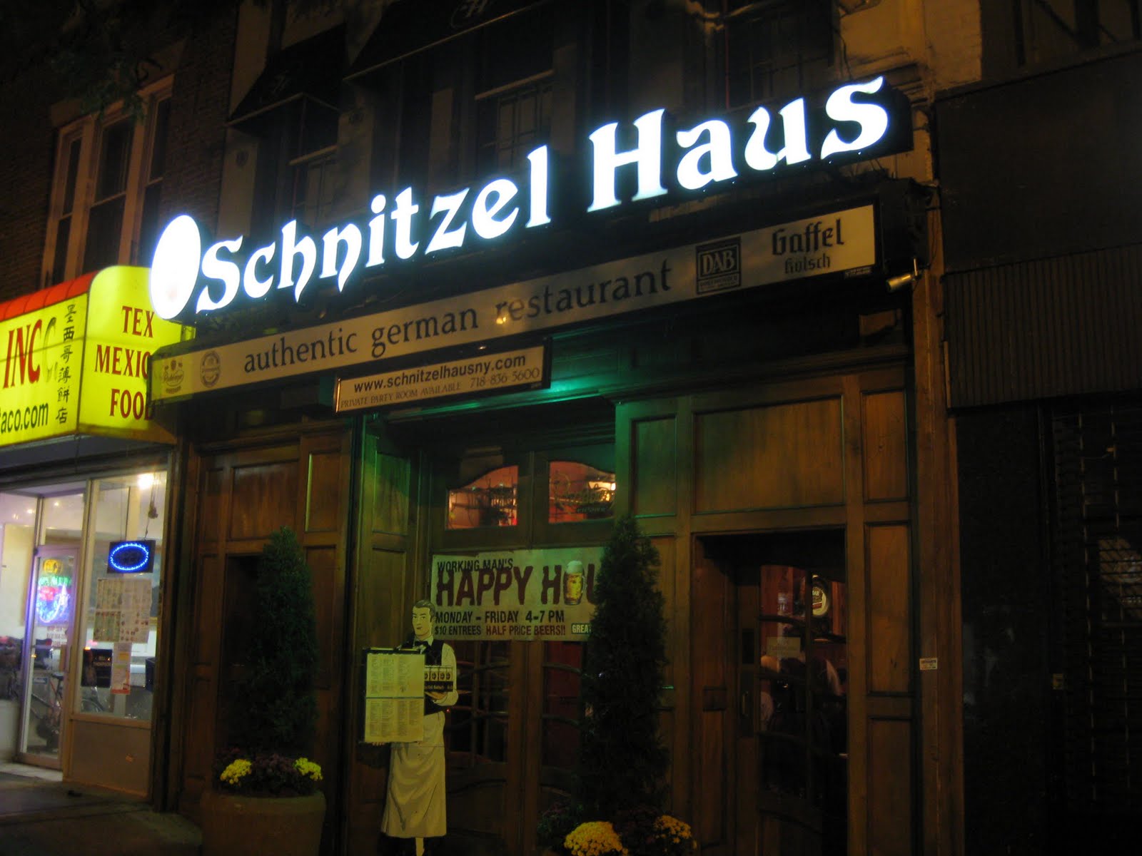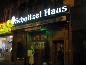 After a very physical soccer match against the Chernomorets Black Sea at Dyker Beach, we decided to try out the Schnitzel Haus in nearby Bay Ridge, Brooklyn. It appeared to be the perfect choice for a cold, rainy October night. We were right about everything except the food and service (the beer was excellent). After a long wait for a table, we ordered some appetizers which took longer than the wait for the table. The salads came with ‘house vinaigrette’ (rather haus) but tasted more like Russian dressing. The schnitzels, instead of being tender and juicy, were tough and dry, made even more difficult to eat with the $0.25 fork. Despite the challenging food and service, a good time was still had by all.