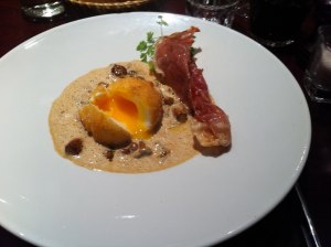 1. Sautéed mushrooms with garlic and parsley and 2. seafood ‘salad’ at Brindille; 3. ‘escargot’ at Chez l’ami Jean ; 4. soft egg and mushrooms (this dish was really very good) and 5. duck at Cafe Constant