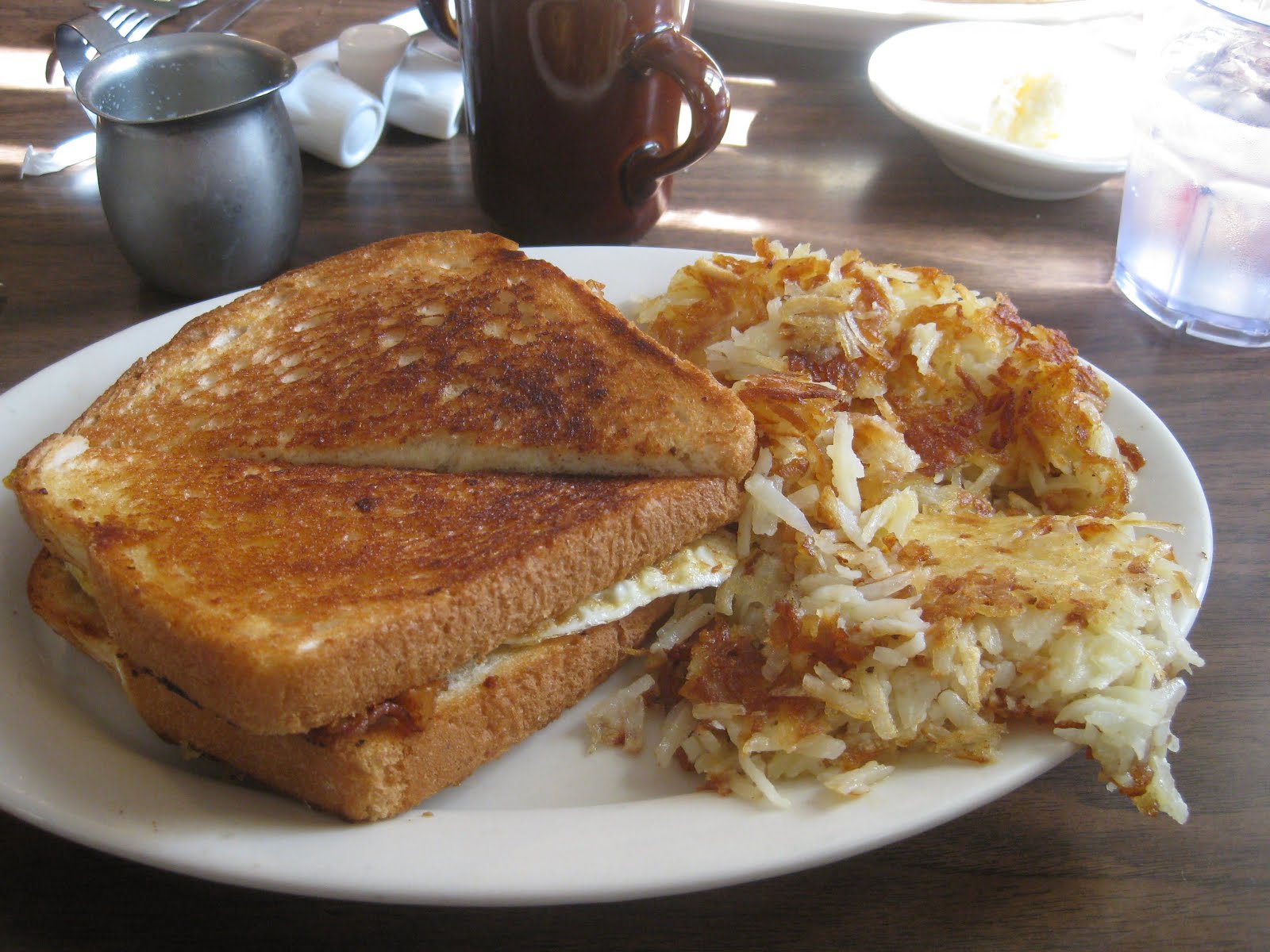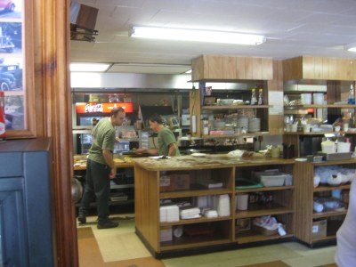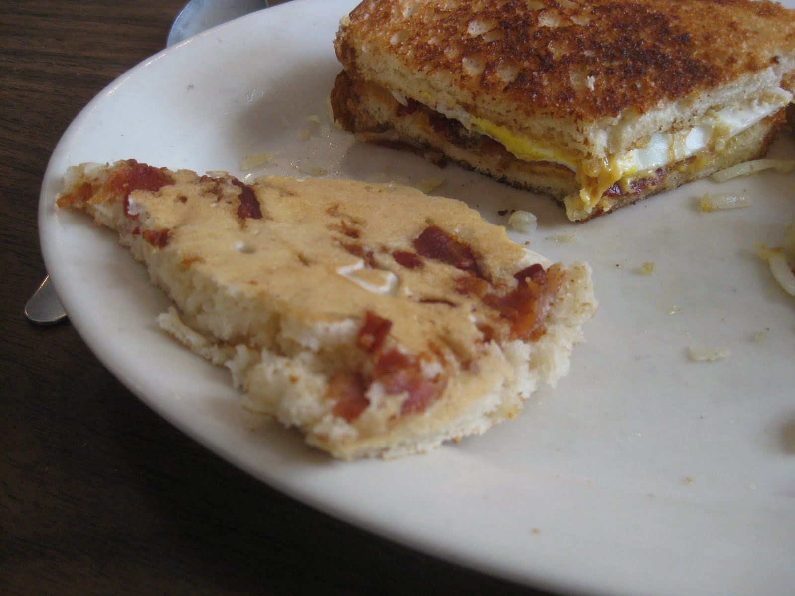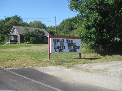 Hi-Hat Pancake House in Farmingdale, Maine. We were tempted by the bacon pancakes so decided to give it a try. The problem with pancakes likes these is that unless the batter and ingredients are well mixed, the good stuff is all on the bottom. This isn’t to say the bacon cakes were bad, but they were more like plain pancakes with some bacon on the bottom (not that there is anything wrong with that). The breakfast sandwich on ‘housemade “Texas toast” was very good. Worth a stop, not sure about going too far out my way for it.