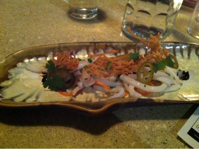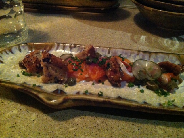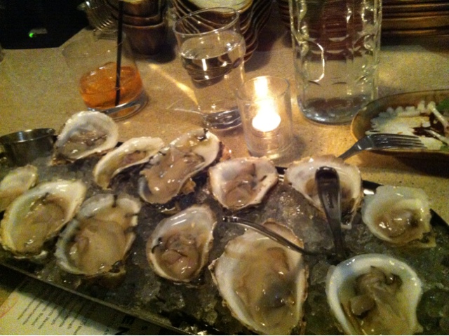 Starting with a grilled Rhode Island squid salad, followed by a dozen oysters from Maine (winter point, pine point, pemaquid, north haven, john’s river and shallow bay); lightly cured artic char (fried bagel, creme fraiche, red onion).