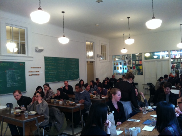 A stop for lunch at M Wells @ MOMA’s PS1 museum in Long Island City. Egg tomato pot, gravlax tart and one “fun pie”. The tables are arranged like school desks. Don’t forget to raise your hand to order.