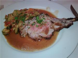 For my next course, I went with the plat du jour which was a roasted veal chop and ratatouille. The veal chop had a nice crust on it and went well with the ratatouille. I finished with some roasted peaches and vanilla ice cream. With my belly full, I was ready for my train ride back to Paris.