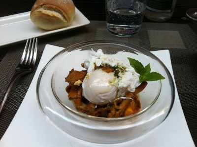 Had a very nice lunch at La Table, in Perpignan. L’oeuf polle poche aux girolles fraiches; filet du loup and ‘crumble’ aux mirabelles.