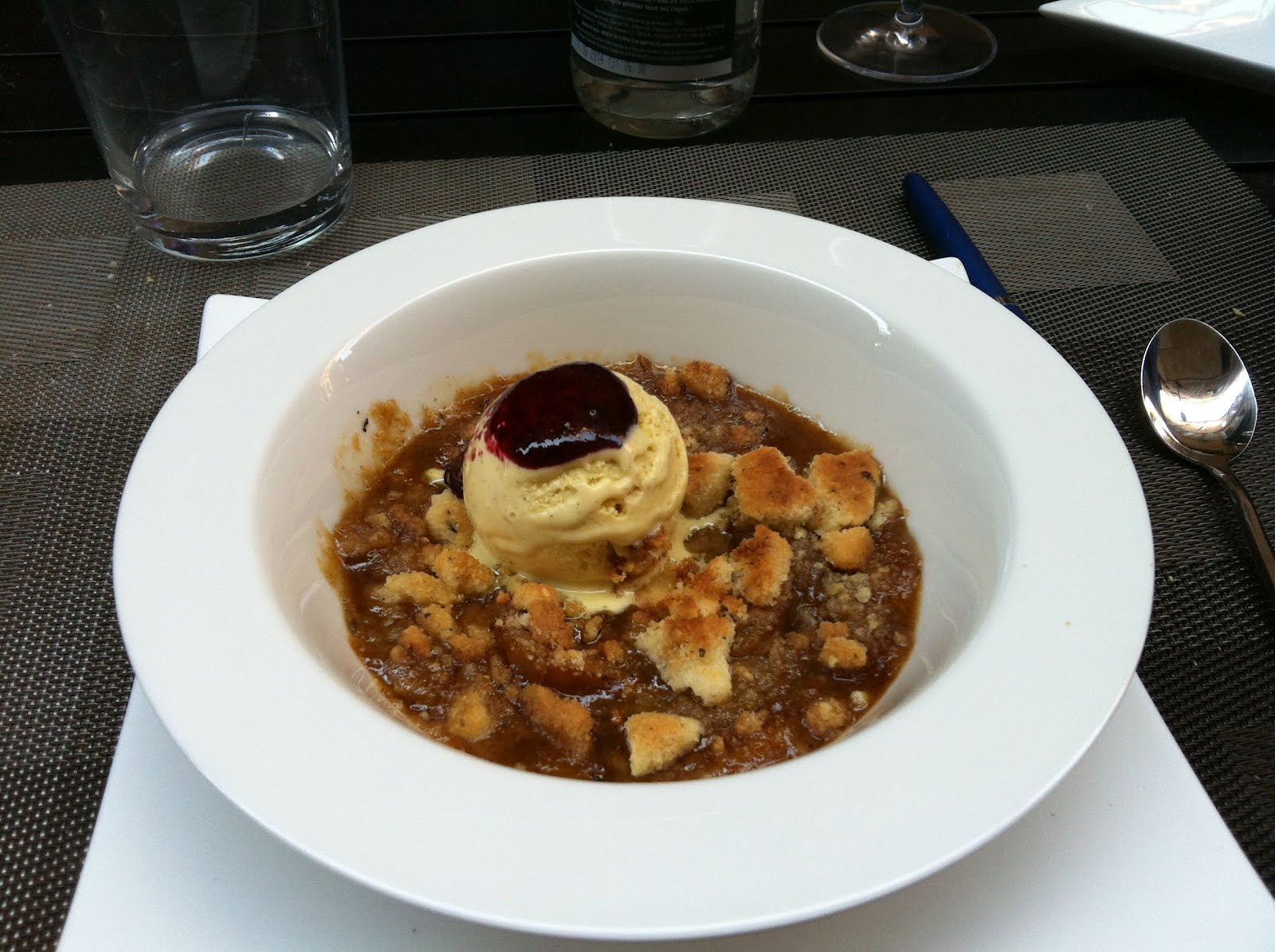 Had a very nice lunch at La Table, in Perpignan. L’oeuf polle poche aux girolles fraiches; filet du loup and ‘crumble’ aux mirabelles.