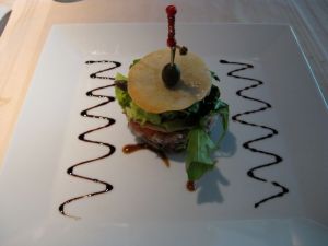 Amuse-Buche (Savory); Tuna Tartare with Avocado; Mixed Grilled Seafood;